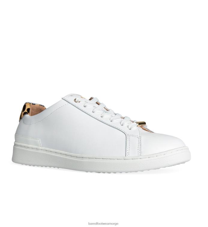 Bared Footwear kvinner hornfugl 3 V20X251 joggesko i hvitt skinn og kalvehår i leopard